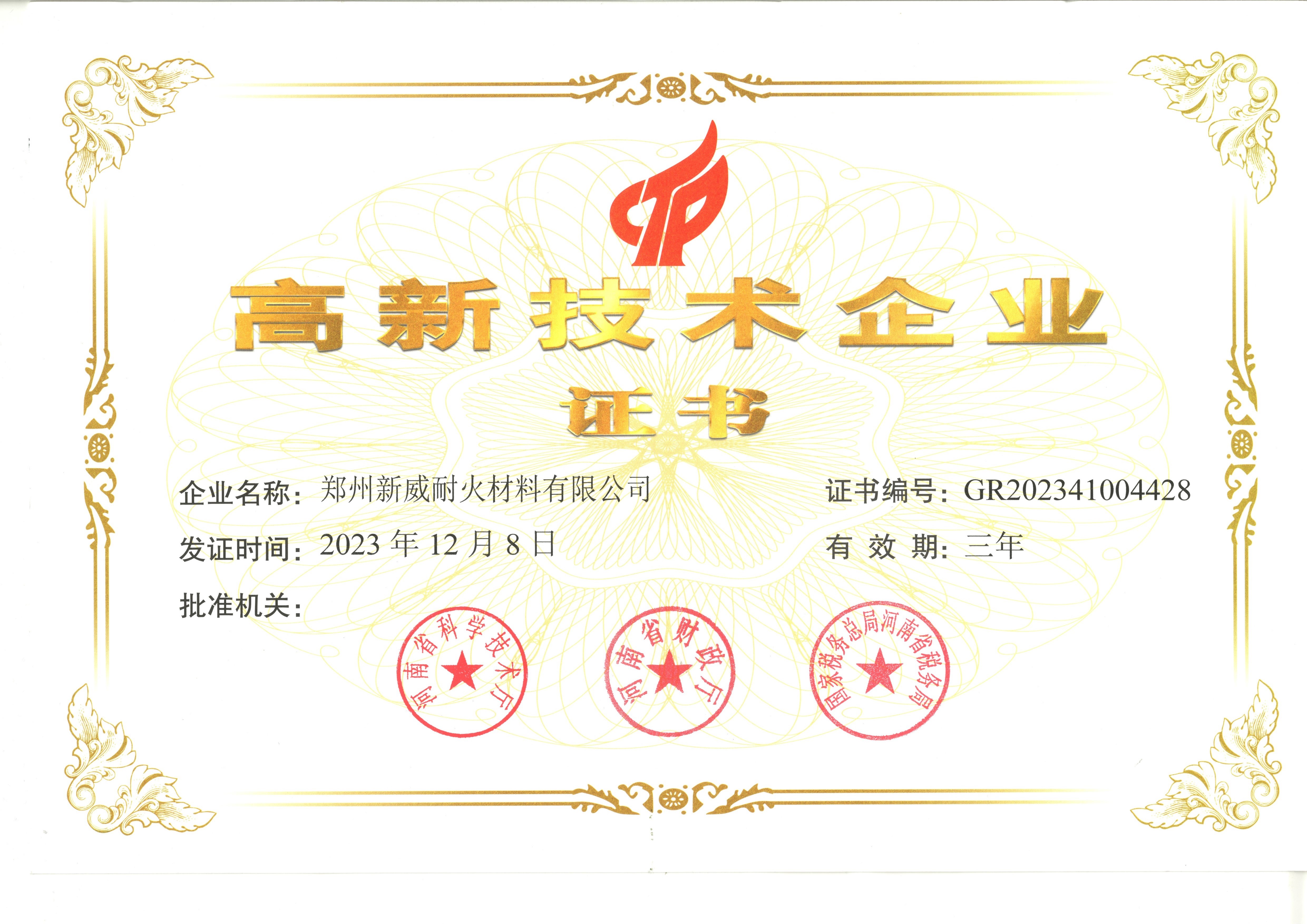 高新技術企業證書